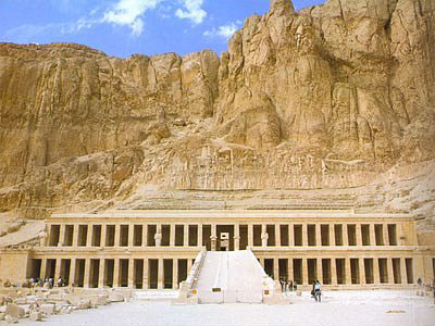 Луксор. Храм царицы Хатшепсут. Общий вид. Иллюстрация предоставлена туристическим отделом Посольства Египта.