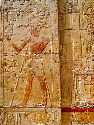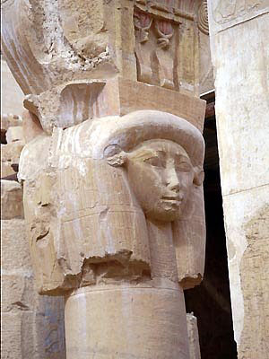 Луксор. Храм царицы Хатшепсут. Скульптурное украшение колонны. Иллюстрация предоставлена туристическим отделом Посольства Египта.