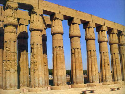 Луксор. Колоннада перистильного двора храма Амона-Ра. Иллюстрация предоставлена туристическим отделом Посольства Египта.