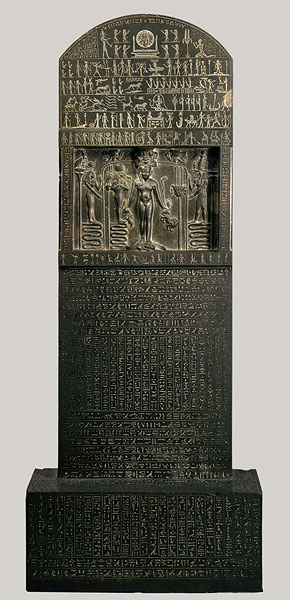 Магическая стелла Меттерниха. В ее верхней части изображено ночное путешествие солнца через мир теней; надписи содержат тринадцать формул против яда и болезней. В центре стеллы — изображение бога Гора -ребенка. Стелла получила свое название по имени австрийского канцлера Меттерниха, который плучил ее в подарок в 1828. Граувакка. Древний Египет. 20 династия, 360-343 гг. до н.э.