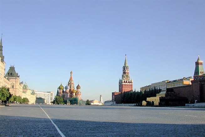 Панорама Красной площади и Московского Кремля. Спасская башня и Храм Василия Блаженного (Покровский собор). Фото С. А. Фомченковой.
