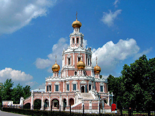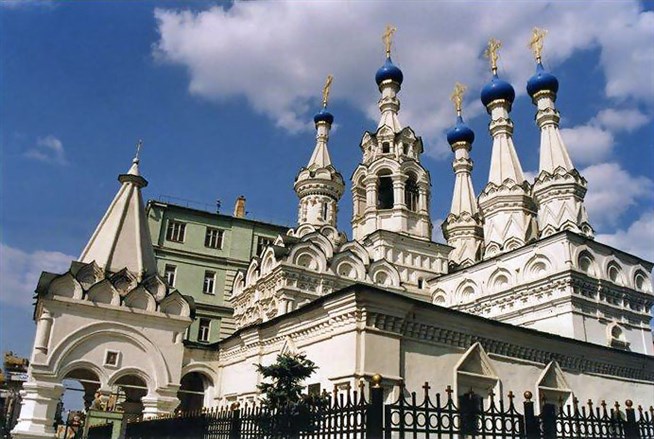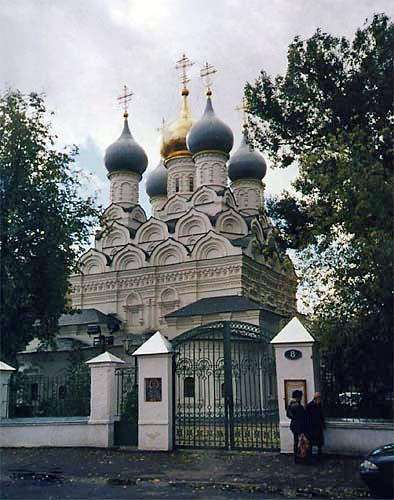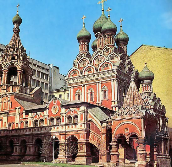 Церковь Троицы в Никитниках. 1631-1634. Москва. Церковь венчают три ряда перспективных кокошников и декоративное пятиглавие, они придают внешнему облику храма особую праздничную торжественность.