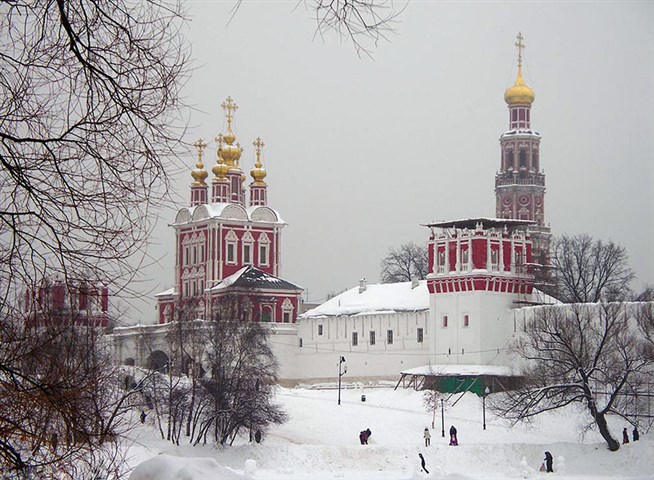 Новодевичий монастырь. Основан в 1524 великим князем Василием III. Архитектурный ансамбль: крепостные стены (кон. 17 в.), Смоленский собор (1524-1525; росписи 16-17 вв., резной иконостас 17 в.), трапезная (1685-87), колокольня (1689-90), жилые, хозяйственные и церковные постройки 17 в.