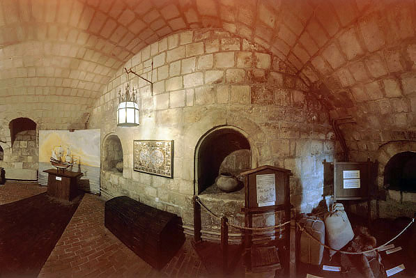 Старый английский двор. Белокаменный подклет. Он служил для хранения ценных вещей, купеческих товаров и др. Конец 15 — начало 16 в. Филиал Музея истории города Москвы.