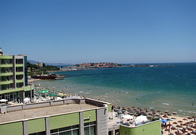 Несебр. Вид на побережье. Город расположен на Несебрском полуострове и является одним из древнейших городов в Европе. Фото В.В. Хороса.