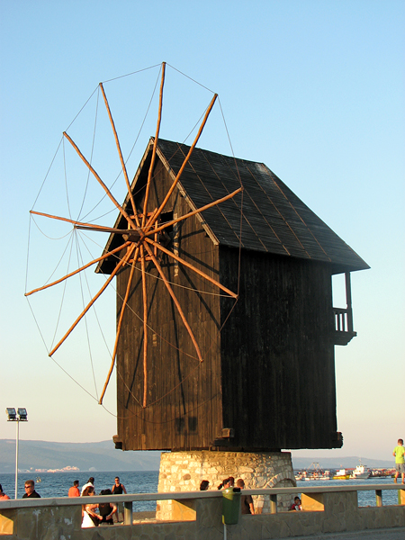 Несебр. У въезда в Несебр гостей встречает очаровательная старая мельница. Этот уютный городок расположен на скалистом острове длиной 850 и шириной 300 м, связанном с побережьем узкой полосой земли. Фото В.В. Хороса.