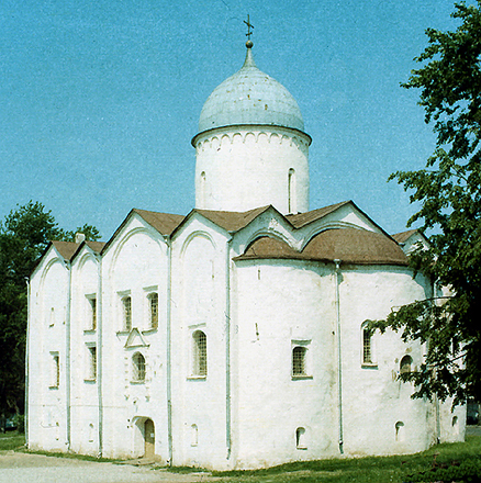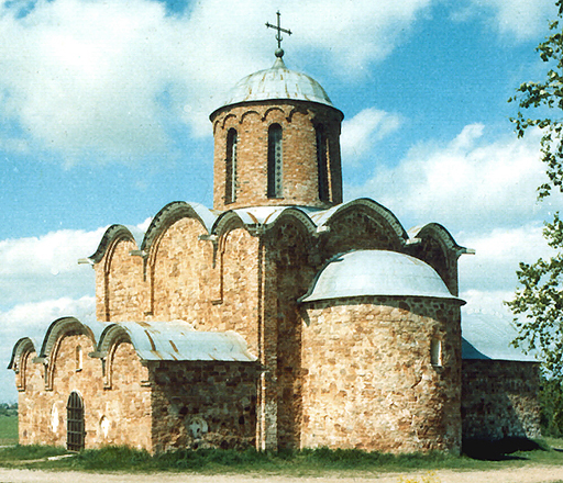 Великий Новгород. Церковь Спаса на Ковалеве расположена к востоку от Новгорода, за притоком Волхова — Малым Волховцом. Храм был выстроен в 1345 году новгородцем Онцифором Жабиным и расписан в 1380 году.