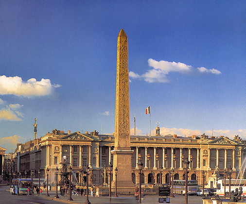 Площадь Согласия в Париже с обелиском, вывезенным Наполеоном из Луксорского храма (Египет).