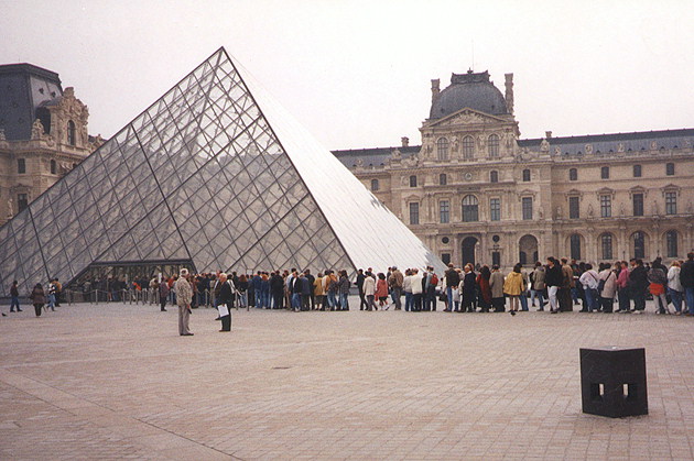 Стеклянная пирамида во внутреннем дворе Лувра.
