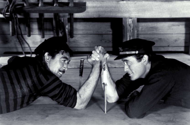 Энтони Куин и Грегори Пек в фильме Рауля Уолша "Мир в его руках". Архив редакции "Видео-АСС".