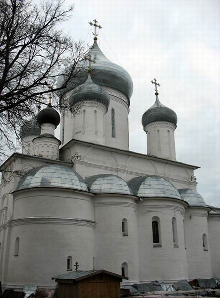 Переславль-Залесский. Никитский собор в Никитском монастыре. 1561-1564. Возведен по приказу царя Ивана Грозного. Пятиглавый храм; в южном приделе церковь в честь местного чудотворца Никиты Столпника постройки времен Василия Третьего. Иван Грозный приезжал на освящение собора. Фото С.А. Фомченковой.