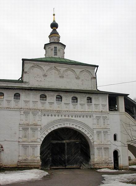 Переславль-Залесский. Проездные ворота Горицкого монастыря. 17 в. Расположены в восточной стене. Верхняя массивная надстройка сооружена во второй половине 19 в. Фото С.А. Фомченковой.