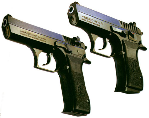 Израильские пистолеты «Джерихо-941» (справа модификация FB). Конструкция этих пистолетов была разработана американской фирмой «Магнум Рисеч» на основе чешского пистолета CZ-75 и продана корпорации «Израиль Милитари Индастриз» (IMI).