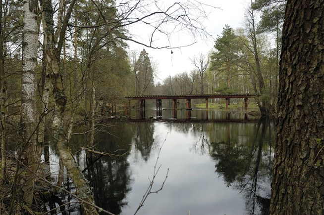 Мещерский национальный парк занимает площадь 103 тысяч га. Мост через реку Поля.