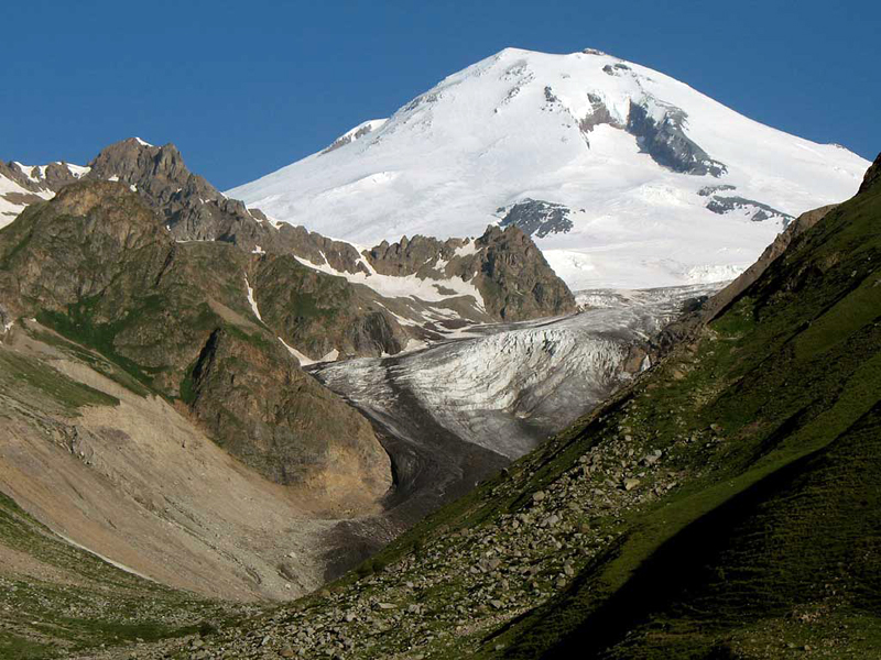 Эльбрус. Высота западной вершины 5642 м, восточной — 5621 м.