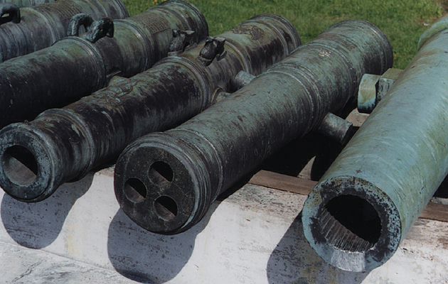 Ствол двухгривенной трехканальной пушки отлитой в России в первой половине 17 века.