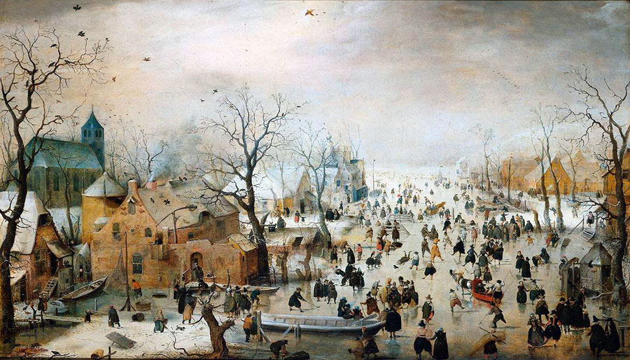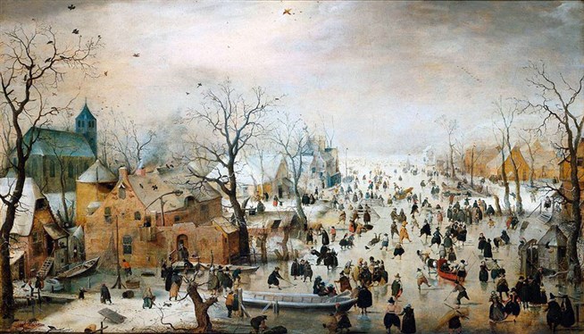 Хендрик Аверкамп (1585-1634). Зимний пейзаж с забавами на льду. Около 1608.