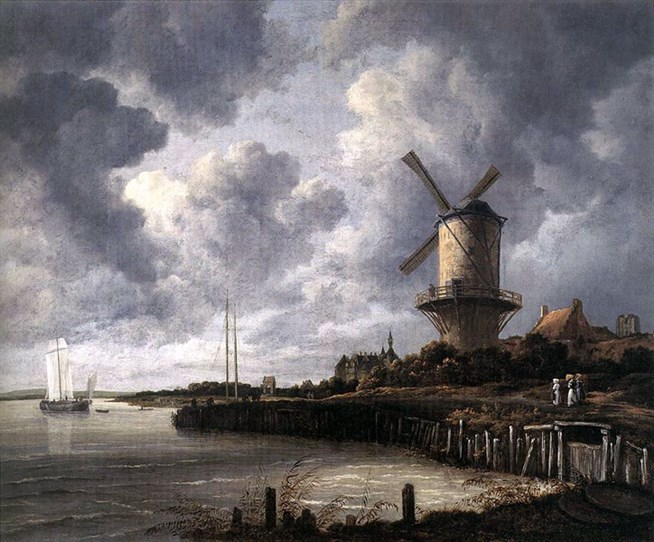 Якоб ван Рейсдал (1628-1682). Пейзаж с мельницей. 1670. Фрагмент.