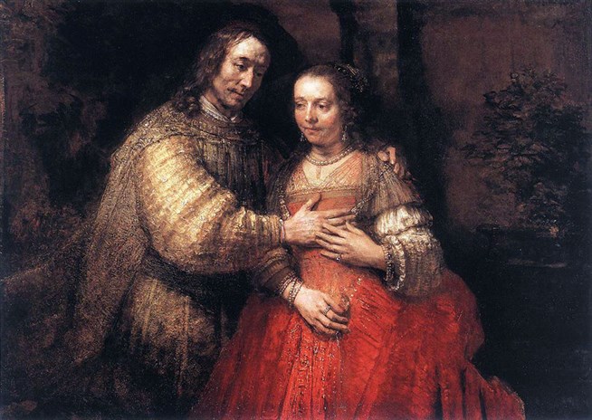 Рембрандт (1606-1669). Еврейская невеста (Исаак и Ревекка). 1667.
