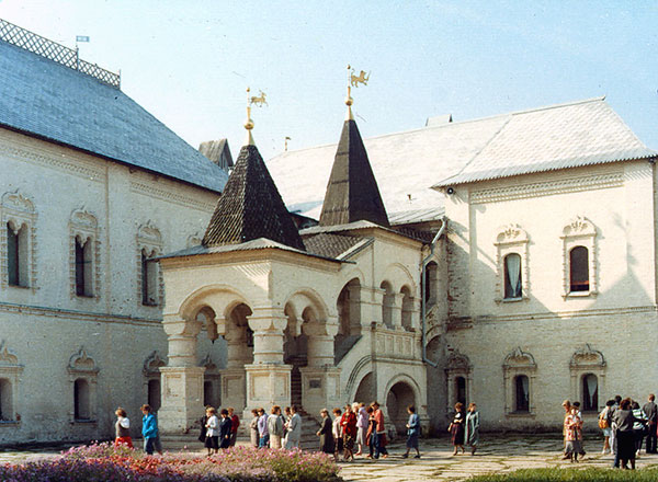 Ростовский кремль. Красная палата была возведена в 1670-1680-х годах для приема царей. В палату ведет высокое крыльцо, завершенное двумя шатрами.