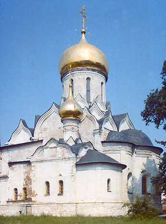 Саввино-Сторожевский монастырь. Белокаменный монастырский собор Рождества Богородицы возведен на средства князя Юрия Дмитриевича в 1405 году. Массивная луковичная глава — работа 17 века.