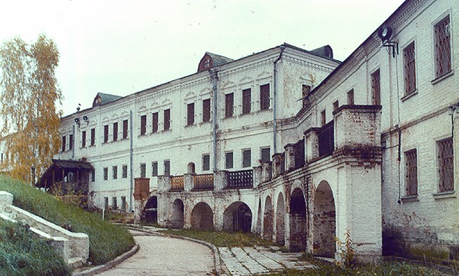 Саввино-Сторожевский монастырь. Трехэтажный корпус братских келий построен в середине 17 века, но впоследствии несколько раз перестраивался. Двухэтажный корпус был выстроен в 19 веке.