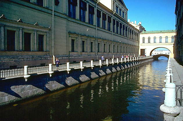 Зимняя канавка. Канал был прорыт в 1718-19 гг. от реки Большая Нева до реки Мойка между современными зданиями Старого Эрмитажа и Эрмитажного театра, соединенными крытой галереей. Первоначально канал назывался Зимнедомским, или Зимнедворцовым (по соседнему Зимнему дворцу Петра I).