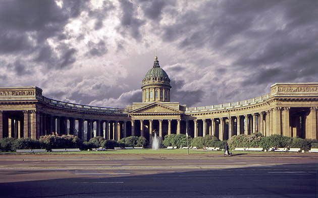 Казанский собор в Санкт-Петербурге построен для перенесения в него древней иконы Казанской богоматери, по ее имени и назван. Здание собора является монументальным памятником архитектуры русского классицизма (архитектор А. Н. Воронихин). Грандиозная полукруглая колоннада из 96 поставленных в четыре ряда коринфских колонн с шестиколонным портиком в центре примыкает к боковому (северному) входу собора и обращена к Невскому проспекту.