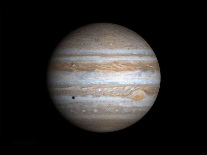 Юпитер состоит преимущественно из газа и не имеет твердой поверхности.