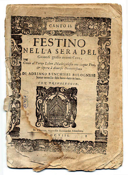 «Бал вечером в четверг…». Собрание мадригалов Адриано Банкьери. Один из наиболее ранних книжных памятников музея. Венеция, 1608.
