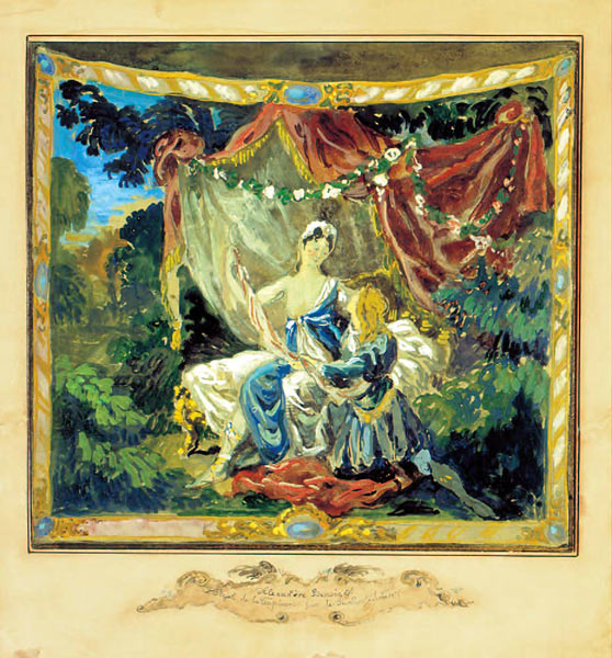 А. Бенуа. Эскиз гобелена для первой картины к балету Н. Черепина «Павильон Армиды». Мариинский театр, Санкт-Петербург, 1907.