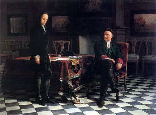 Н.Н. Ге «Петр I допрашивает царевича Алексея Петровича в Петергофе». 1871.