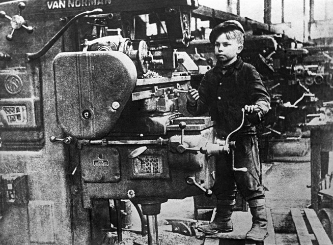 Двенадцатилетний фрезеровщик. Пермский моторостроительный завод. 1943 год.