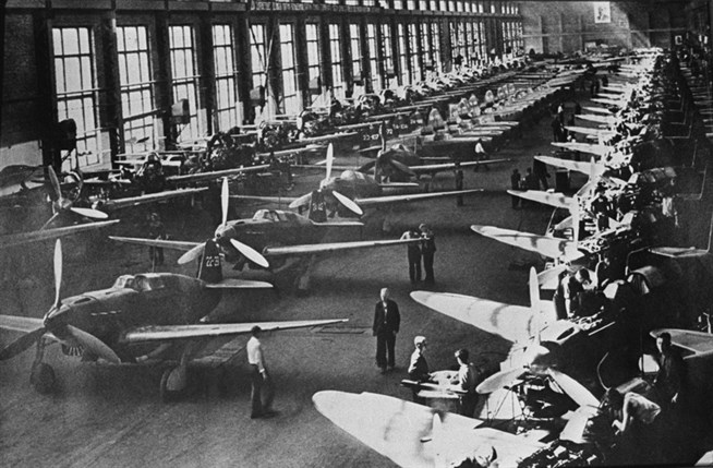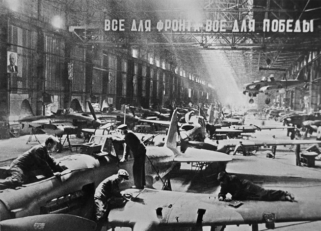 Москва. Сборка корпусов самолетов на авиазаводе. Июнь 1943 года. Снимок Николая Ситникова [Тыл фронту]
