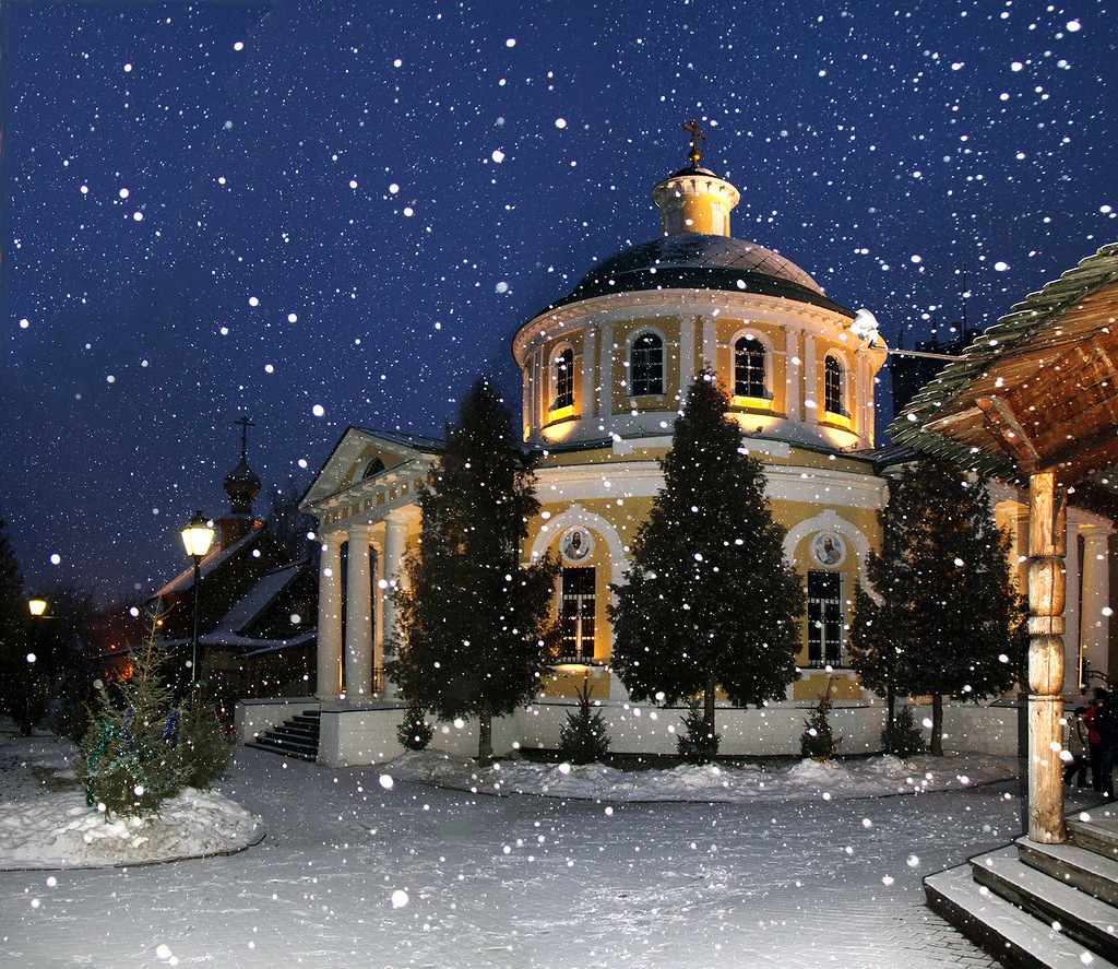 Новодевичий монастырь в рождественскую ночь. Москва. Новый 2011 год. Фото Сергея Покладова