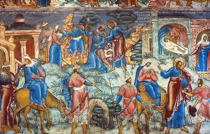 Ярославль. Деяния пророка Елисея, ученика пророка Ильи. Фреска церкви Ильи Пророка, расписанной в 1680-1681 годах костромскими мастерами под руководством Гурия Никитина и Силы Савина.