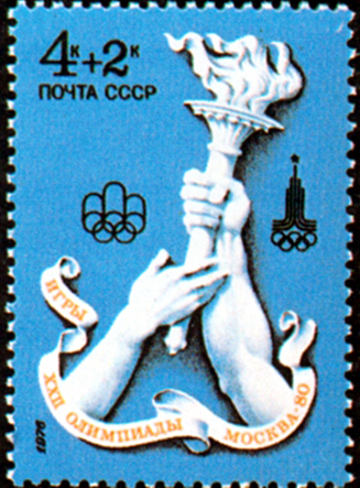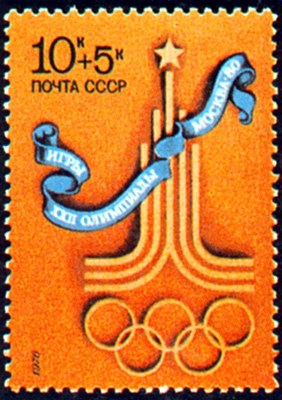 Выпущенная в СССР почтовая марка в честь Олимпийских игр в Москве (1980).
