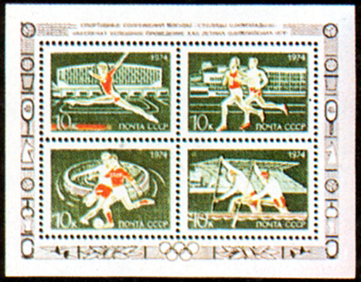 Блок почтовых марок, посвященных Олимпийским играм в Москве.