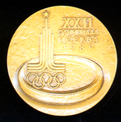 Олимпийская медаль (лицевая сторона) Игр XXII Олимпиады.
