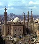 В мечети-медресе султана Хасана (1356-1363 гг.), напоминающей крепость, находится богато украшенный мавзолей, где был погребен рано умерший Анук — сын и наследник султана Хасана. Высота купола мечети — 18 м, диаметр — 21 м. Строительство мечети над мавзолеем султан Хасан оплатил поступившим в казну имуществом горожан, умерших от чумы в 1348 году. В мавзолее находится самая древняя в Египте кафедра для чтения Корана, изготовленная из ели и инкрустированная эбеновым деревом и слоновой костью. Южный минарет этой мечети самый высокий в Каире, его высота — 81 м.