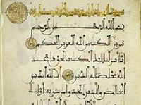 Кора́н — главная священная книга мусульман, собрание проповедей, обрядовых и юридических установлений, заклинаний и молитв, назидательных рассказов и притч, произнесенных Мухаммедом в форме «пророческих откровений» в Мекке и Медине между 610-632 годами и положивших начало религиозному учению ислама. Слово «коран» по-арабски буквально означает «чтение». При жизни Мухаммеда текст Корана передавался главным образом по памяти, сведений о его собственноручных записях нет, однако существовали записи отдельных «откровений». Первые записи полного текста Корана были сделаны сподвижниками Мухаммеда вскоре после его смерти в 632 году. Эти записи, воспроизводя в целом идентичный текст, различались порядком расположения «откровений» и их количеством, названиями некоторых глав и написанием ряда слов и выражений. Между 650-655 годами по приказу халифа Османа специальная коллегия на основе имеющегося текста Корана, с учетом ряда записей и свидетельств лиц, знавших проповеди пророка наизусть, подготовила список текста Корана (так называемая Османова редакция), постепенно вытеснившего другие записи и затем признанного каноническим. Самые ранние сохранившиеся списки Корана относятся к рубежу 7-8 веков.