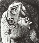 В 1930-1937 годах создает «Сюиту Воллара»; в числе ста офортов, продолжающих традиции Рембрандта и Гойи, — сцены с человекобыком, где легендарный обитатель лабиринта Минотавр превращается в «миф Пикассо», ибо художник весьма произвольно трактует древнее сказание.