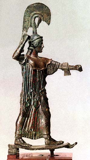Статуя Афины Промахос (Путеводительницы в битвах). Эта огромная статуя стояла на центральной площади Афинского акрополя. Золоченый кончик копья Афины был виден подплывающим к Аттике морякам.
