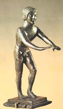 Бегун на старте. Бронзовая статуэтка. 480-470 до н. э. Олимпия, Археологический музей.