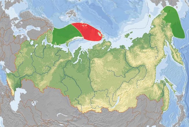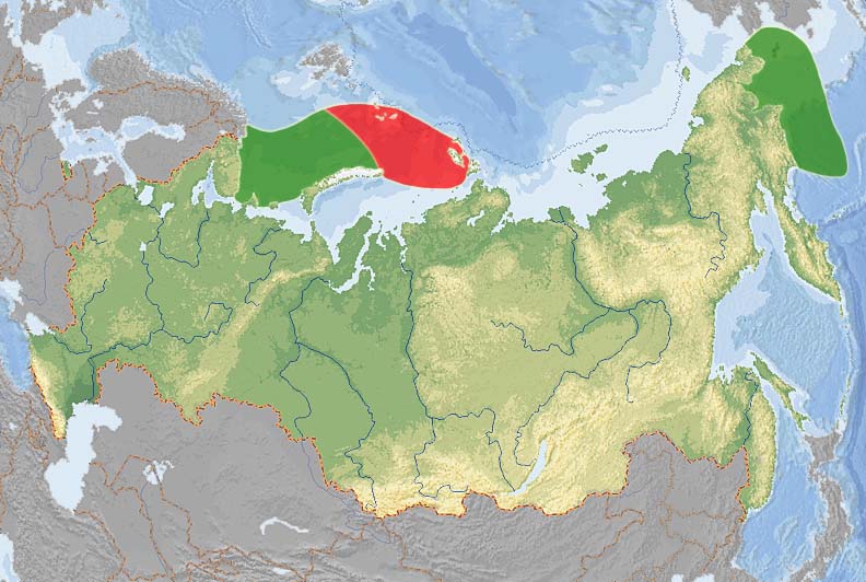 Ареал белой чайки на территории России. Белая чайка (Pagophila eburnea, Phipps, 1774) — птица семейства чайковых. Занесена в Красную книгу России как редкий вид.