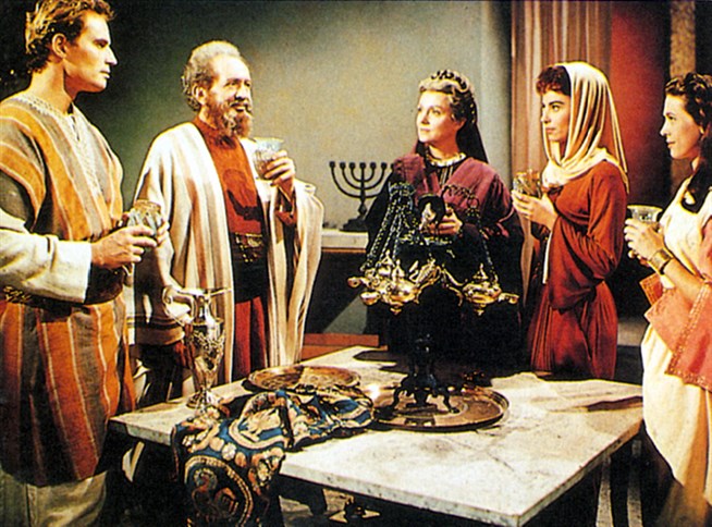 Чарлтон Хестон, Сэм Яффе, Марта Скотт, Хая Харарит, Кети О`Доннел в фильме «Бен-Гур». 1959 год.