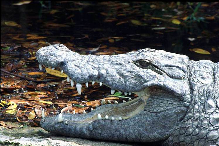 От остальных настоящих крокодилов болотный крокодил отличается короткой и широкой мордой.