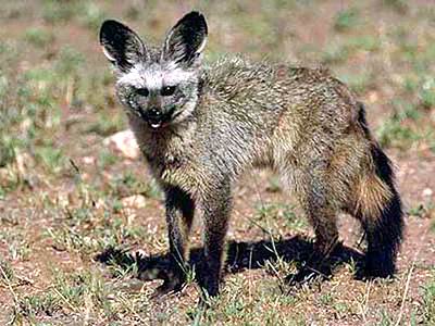 Большеухая лисица (Otocyon megalotis) имеет широкие уши высотой до 14 см.