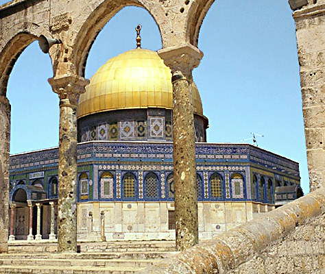 Мечеть Омара. Построена на месте, где был храм Соломона. Под куполом мечети находится скала, с которой, по верованиям мусульман, Мохаммед вознесся в небо. По представлениям же иудеев, именно здесь находилось Святое Святых Иерусалимского храма.
