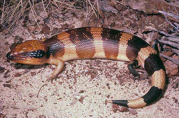 Исполинская черновисочная ящерица (Tiliqua occipitalis) — один из самых красивых видов сцинковых.